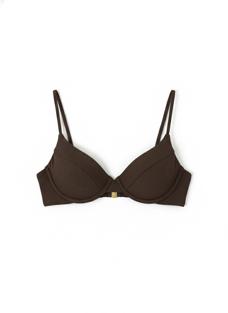 The Sculpt Top from Sis Swim is a structured underwire bikini top that lifts and supports with effortless elegance. Featuring adjustable straps, a secure gold clasp closure for a bold silhouette - all in soft, sustainable recycled material.